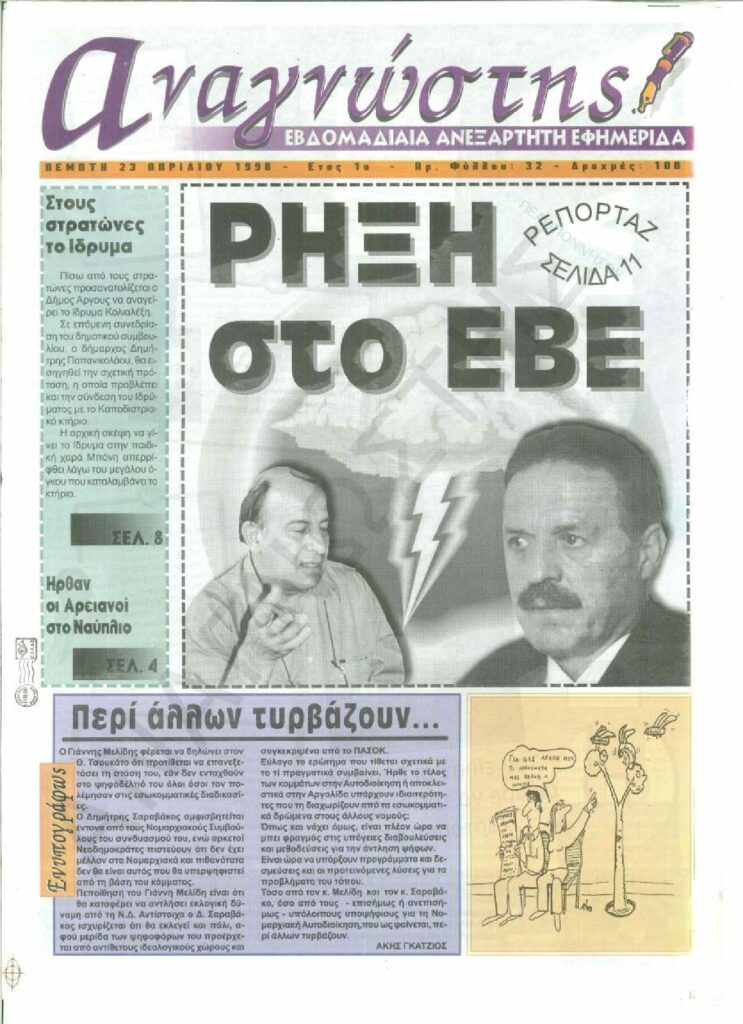 To Τεύχος 32 της εβδομαδιαίας εφημερίδας Αναγνώστης Πελοποννήσου με έδρα το Ναύπλιο του Νομού Αργολίδας που εκδόθηκε και κυκλοφόρησε την Πέμπτη 23 Απριλίου 1998