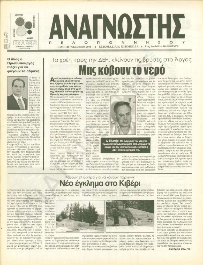 To Τεύχος 344 της εβδομαδιαίας εφημερίδας Αναγνώστης Πελοποννήσου με έδρα το Ναύπλιο του Νομού Αργολίδας που εκδόθηκε και κυκλοφόρησε την Πέμπτη 7 Οκτωβρίου 2004