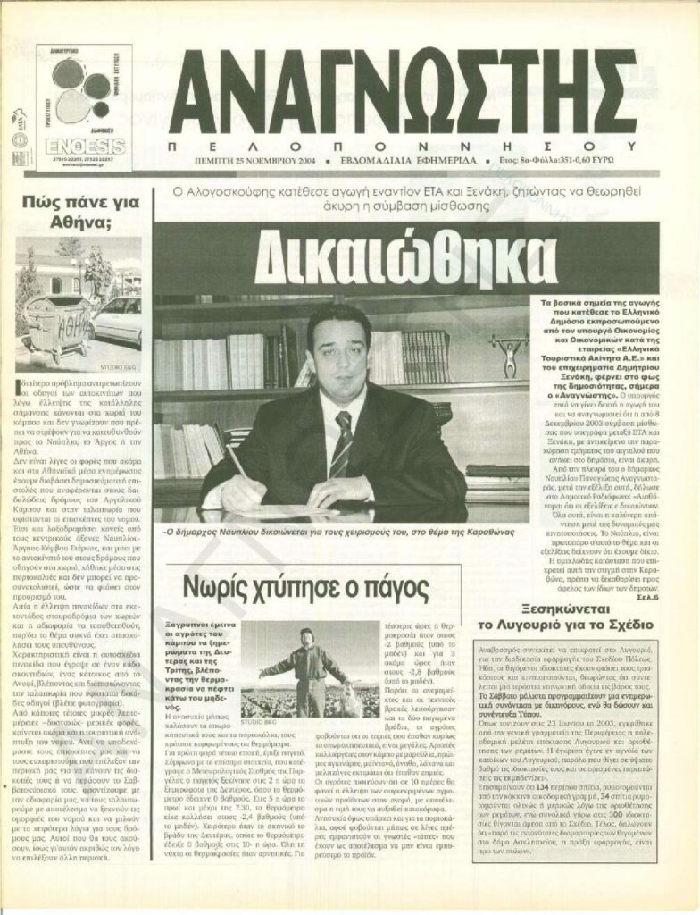 To Τεύχος 351 της εβδομαδιαίας εφημερίδας Αναγνώστης Πελοποννήσου με έδρα το Ναύπλιο του Νομού Αργολίδας που εκδόθηκε και κυκλοφόρησε την Πέμπτη 25 Νοεμβρίου 2004