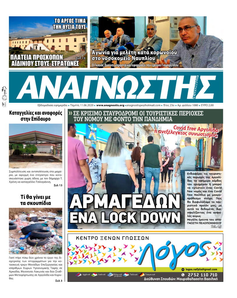 To Τεύχος 1080 της εβδομαδιαίας εφημερίδας Αναγνώστης Πελοποννήσου με έδρα το Ναύπλιο του Νομού Αργολίδας που εκδόθηκε και κυκλοφόρησε την Πέμπτη 11 Ιουνίου 2020
