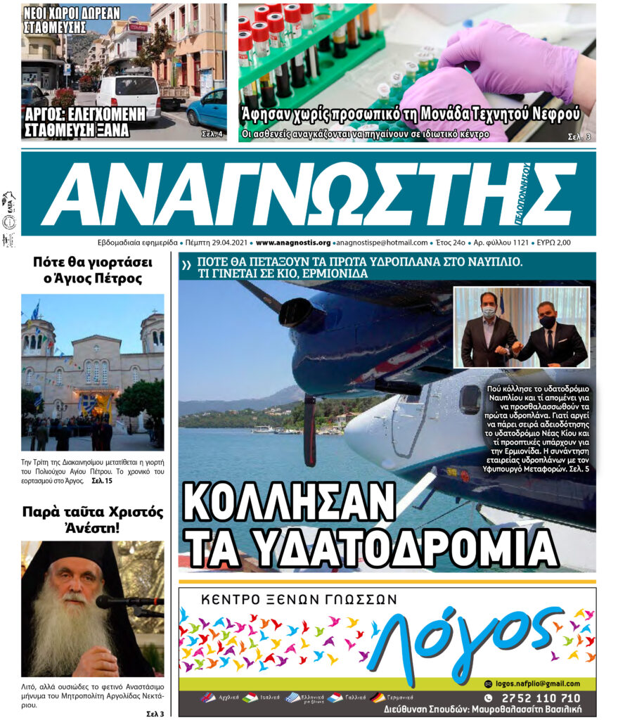 To Τεύχος 1121 της εβδομαδιαίας εφημερίδας Αναγνώστης Πελοποννήσου με έδρα το Ναύπλιο του Νομού Αργολίδας που εκδόθηκε και κυκλοφόρησε την Πέμπτη 29 Απριλίου 2021