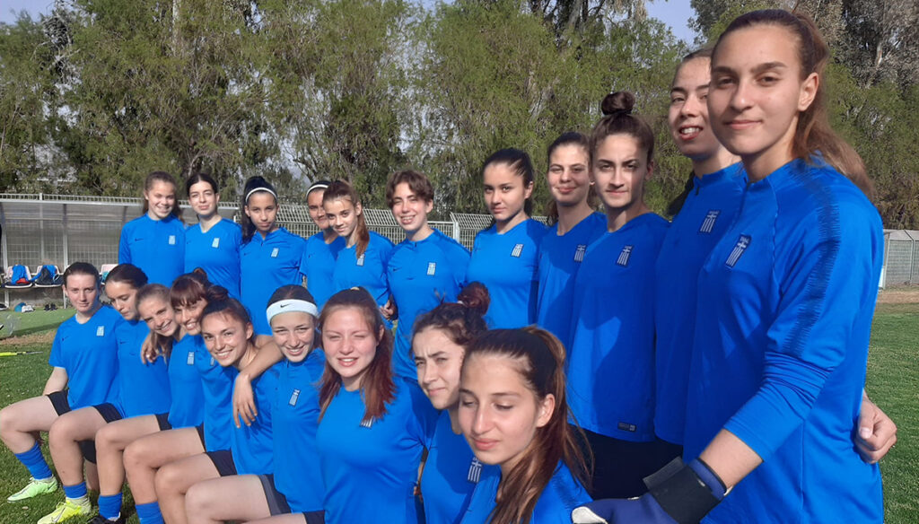 Η αποστολή της Εθνικής Κορασίδων για το τουρνουά που διεξάγεται από 26-4-2022 έως 3-5-2022 στο Ισραήλ. Διακρίνονται στην επάνω σειρά πρώτη από δεξιά η Μούγιου Μαρισόφη (Φείδωνα) και κάτω τρίτη από δεξιά η Γκότση Ιωάννα (Φείδωνα) και τέταρτη η Μούγιου Μαρία-Ελένη (Τροιζηνιακού)