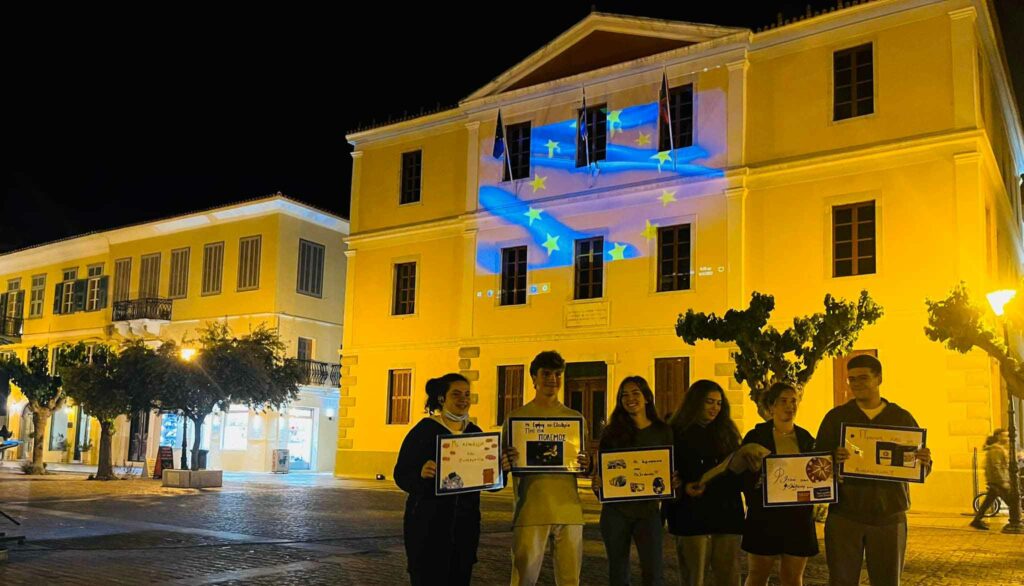 Το Europe Direct Πελοπόννησος, σε συνεργασία με τη «Βιώσιμη Πόλη», τον Δήμο Κορίνθου, τον Δήμο Ναυπλιέων, τον Δήμο Σπάρτης και τον Δήμο Τρίπολης γιορτάζει την Ημέρα Ευρώπης, φωταγωγώντας εμβληματικά κτίρια στην Περιφέρεια Πελοποννήσου με την ευρωπαϊκή σημαία.