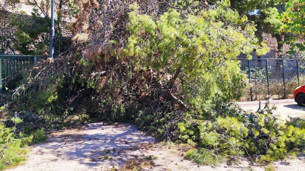 Στο σημείο έσπευσε νωρίς το πρωί συνεργείο του Δήμου προκειμένου να κόψει το πεσμένο κλαδί και να απεγκλωβίσει το όχημα που έχει υποστεί υλικές ζημιές. Το ευτύχημα ήταν ότι δεν βρισκόταν μέσα ο ιδιοκτήτης.
