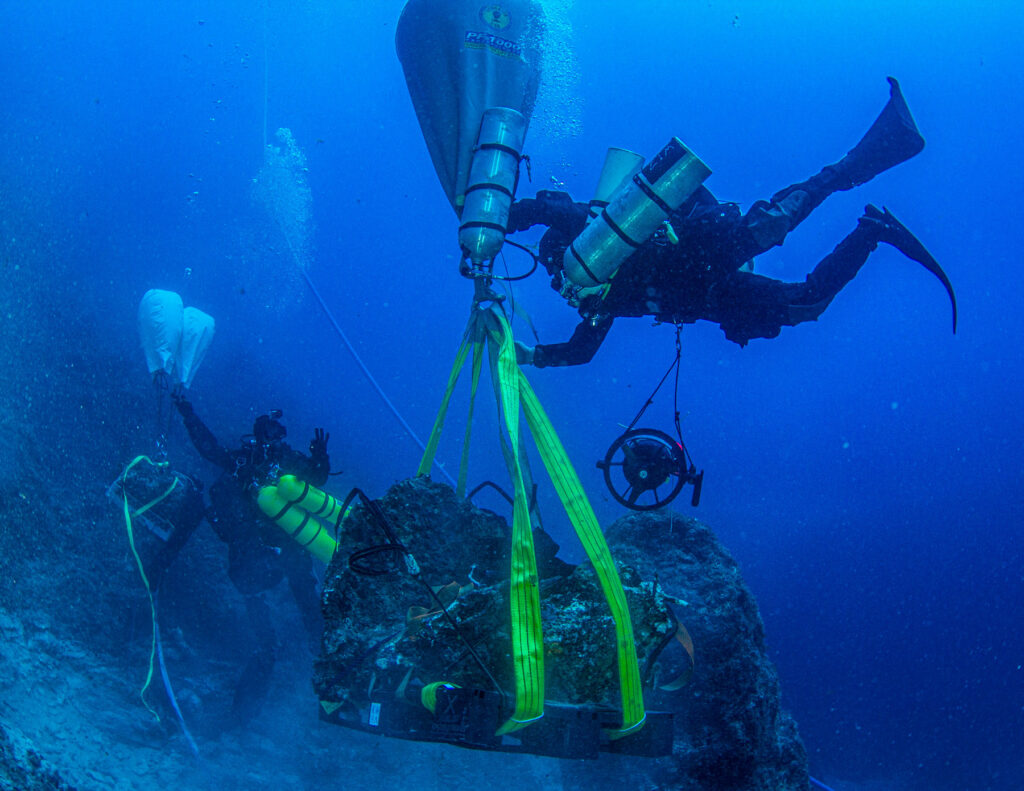 Οι αρχαιότητες μεταφέρθηκαν με ασφάλεια από τα Αντικύθηρα στις εγκαταστάσεις της Εφορείας Εναλίων Αρχαιοτήτων.