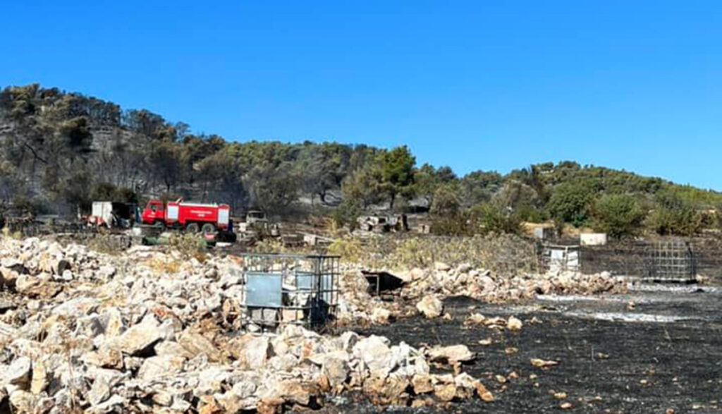 Επίσης, ο Γιάννης Γεωργόπουλος είπε στο ΑΠΕ – ΜΠΕ, ότι «η φωτιά προκάλεσε ζημιές σε ελαιώνες, που εκτιμώ ότι φθάνουν σε έκταση περίπου τα 30 στρέμματα, καθώς και σε δασικές εκτάσεις περιμετρικά της ξενοδοχειακής μονάδας».
