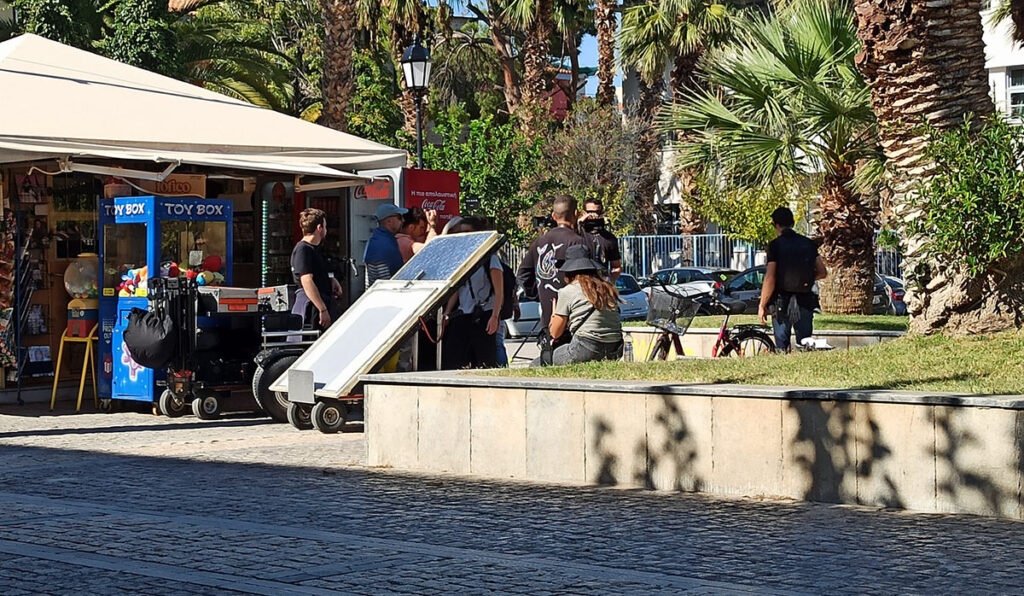 Έντονη κινητικότητα στην παλιά πόλη όπου πολυμελές συνεργείο έκανε γυρίσματα στην Πλατεία Τριών Ναυάρχων και σε άλλα σημεία του Ναυπλίου, όπως η πλατεία Αγίου Σπυρίδωνα.