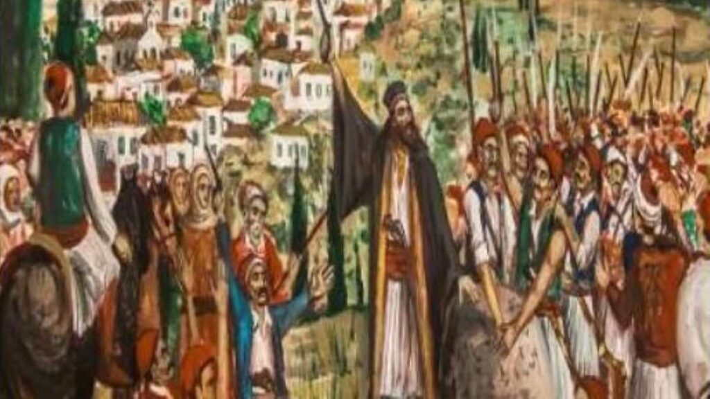 απόδοση τιμών στον τάφο του Κρανιδιώτη οπλαρχηγού.