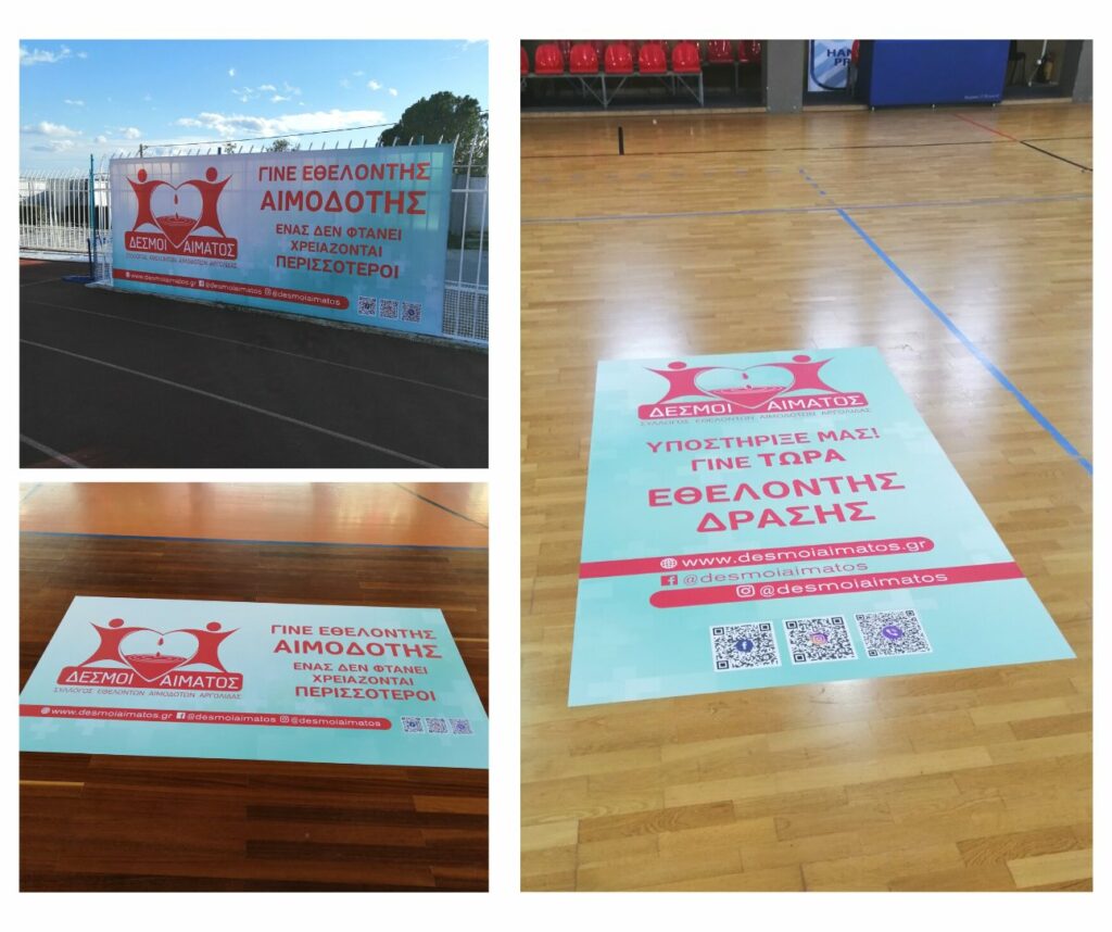 Τοποθέτηση αυτοκόλλητων δαπέδου και διαφημιστική πινακίδα για την εθελοντική αιμοδοσία απέκτησαν τα γήπεδα της Αργολίδας και συγκεκριμένα τα κλειστά γυμναστήρια του Άργους και της Νέας Κίου και το γήπεδο ποδοσφαίρου Άργους.
