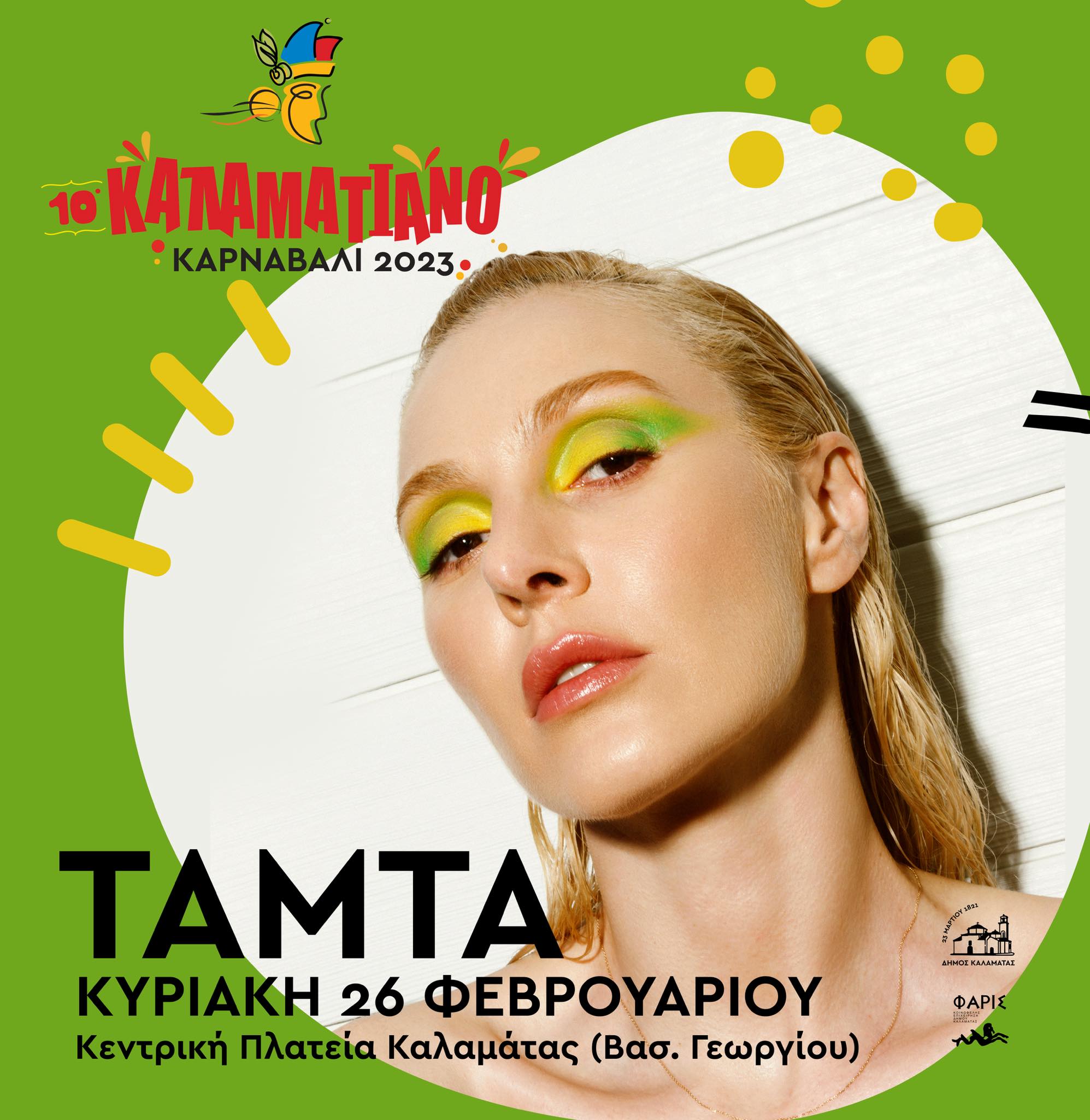 Το Σάββατο 25 Φεβρουαρίου 2023 και ώρα 20.00 θα πραγματοποιηθεί η νυχτερινή αποκριάτικη παρέλαση με αφετηρία από τη συμβολή της Αριστομένους με το Εργατικό Κέντρο Καλαμάτας στις 20.00 και κατάληξη στην πλατεία 23ης Μαρτίου, όπου θα πραγματοποιηθεί DJ party με τον DJ PANTELIS. Την Κυριακή 26 Φεβρουαρίου 2023 θα πραγματοποιηθεί η μεγάλη καρναβαλική παρέλαση στις 16.00, με σημείο εκκίνησης την Πλατεία 23ης Μαρτίου και κατάληξη στην Κεντρική Πλατεία – Βασ. Γεωργίου της Καλαμάτας, όπου θα ακολουθήσει συναυλία με την Τάμτα. Παρουσιάζουν οι Έλενα Κώνστα και ο Λάμπρος Κωνσταντάρας.