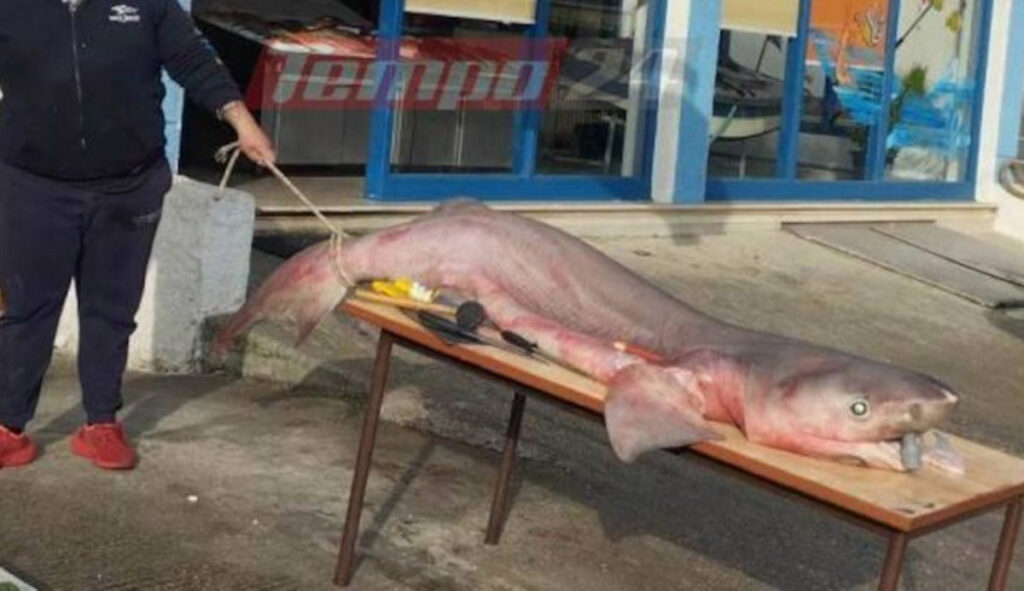 Ο καρχαρίας μήκους τριών μέτρων και βάρους 250 κιλών πιάστηκε ανοιχτά του κορινθιακού κόλπου στο ύψος της γέφυρας Ρίου – Αντιρρίου