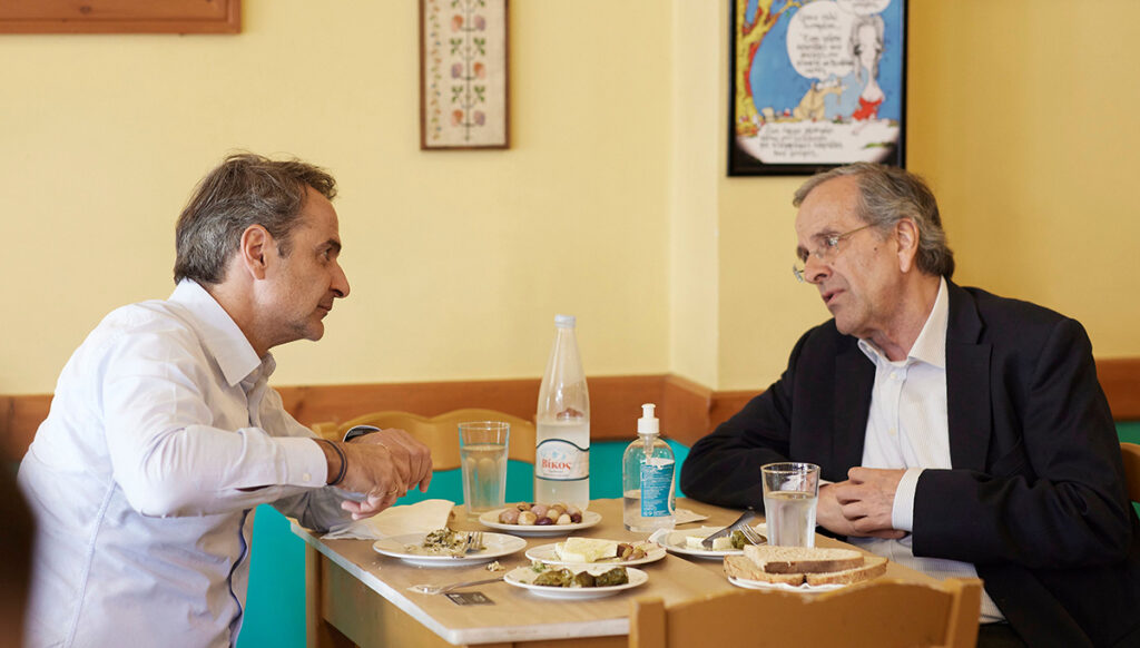 Στάση για φαγητό έκαναν το μεσημέρι της Παρασκευής ο Κυριάκος Μητσοτάκης με τον Αντώνη Σαμαρά. Οι δύο πολιτικοί κάθισαν μαζί σε μεζεδοπωλείο του Ιστορικού Κέντρου της Καλαμάτας, που είναι και η εκλογική περιφέρεια του πρώην πρωθυπουργού.