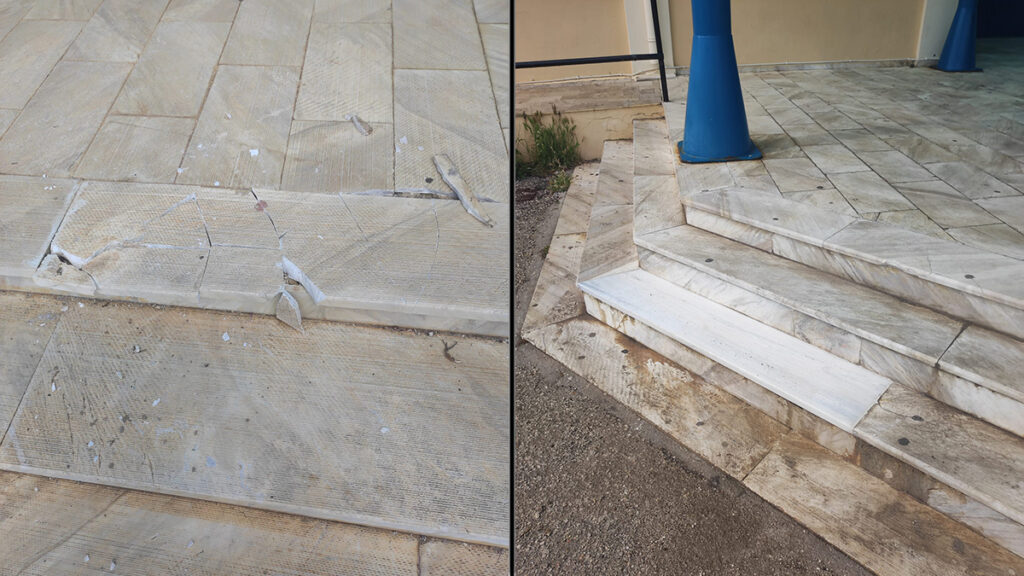 Πυκνώνουν οι καταστροφές υποδομών σε σχολεία στην Ερμιονίδα τις τελευταίες ημέρες, καθώς φαίνεται πως υπάρχει ελλιπής επιτήρηση, ιδίως τις ώρες που οι σχολικές μονάδες είναι κλειστές. Όπως έγινε γνωστό σήμερα, βανδαλισμός σημειώθηκε στο Γενικό Λύκειο Κρανιδίου όταν άγνωστοι τις απογευματινές ώρες που το σχολείο είναι κλειστό έσπασαν τα μάρμαρα στα σκαλοπάτια.