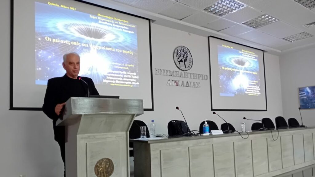 Στην τέταρτη και τελευταία ημερίδα ο εισηγητής Δρ. Αντώνιος Α. Αντωνίου, Αστροφυσικός, με θέμα: «Οι μελανές οπές και η αιχμαλωσία του φωτός» κέντρισε το ενδιαφέρον των συμμετεχόντων με την παρουσίαση των λειτουργιών του εργαστηρίου του σύμπαντος και την ανάλυση των ακραίων αστρικών και συμπαντικών φαινομένων.