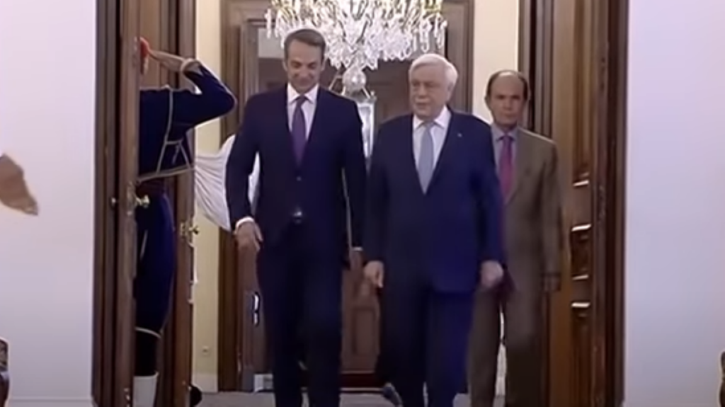 Ο κ. Μητσοτάκης πήγε στο Μέγαρο Μαξίμου, όπου τον υποδέχθηκε στην είσοδο ο υπηρεσιακός πρωθυπουργός Ιωάννης Σαρμάς για να του παραδώσει τα καθήκοντα.