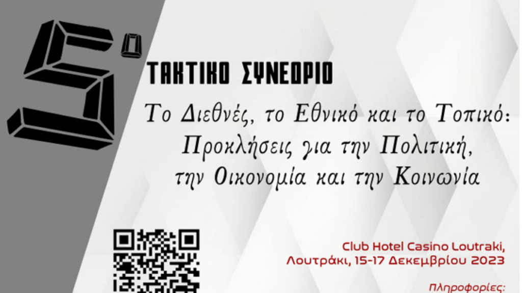 Το Τμήμα Πολιτικής Επιστήμης και Διεθνών Σχέσεων (ΠΕΔιΣ) της Σχολής Κοινωνικών και Πολιτικών Επιστημών του Πανεπιστημίου Πελοποννήσου διοργανώνει το 5ο Τακτικό Συνέδριο του στο Λουτράκι, στο Club Hotel Casino Loutraki, στις 15-17 Δεκεμβρίου 2023. Ο τίτλος του Συνεδρίου είναι: «Το Διεθνές, το Εθνικό και το Τοπικό: Προκλήσεις για την Πολιτική, την Οικονομία και την Κοινωνία».