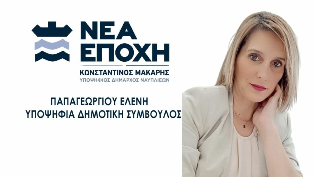 Στον δημοτικό συνδυασμό «Νέα Εποχή» του υποψήφιου δημάρχου Ναυπλιέων Κωνσταντίνου Μάκαρη, εντάσσεται η κα Ελένη Παπαγεωργίου, συμπληρώνοντας την 13η υποψηφιότητα από το Δρέπανο.