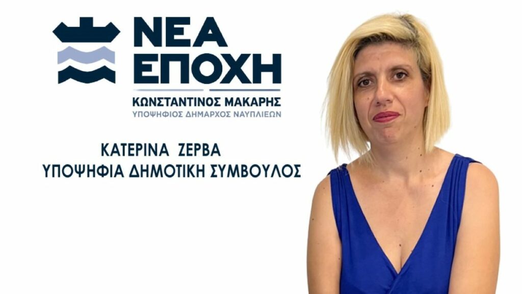 Στον δημοτικό συνδυασμό «Νέα Εποχή» του υποψήφιου δημάρχου Ναυπλιέων Κωνσταντίνου Μάκαρη, εντάσσεται η κα Κατερίνα Ζέρβα, συμπληρώνοντας την 9η υποψηφιότητα από τη Ν. Τίρυνθα.