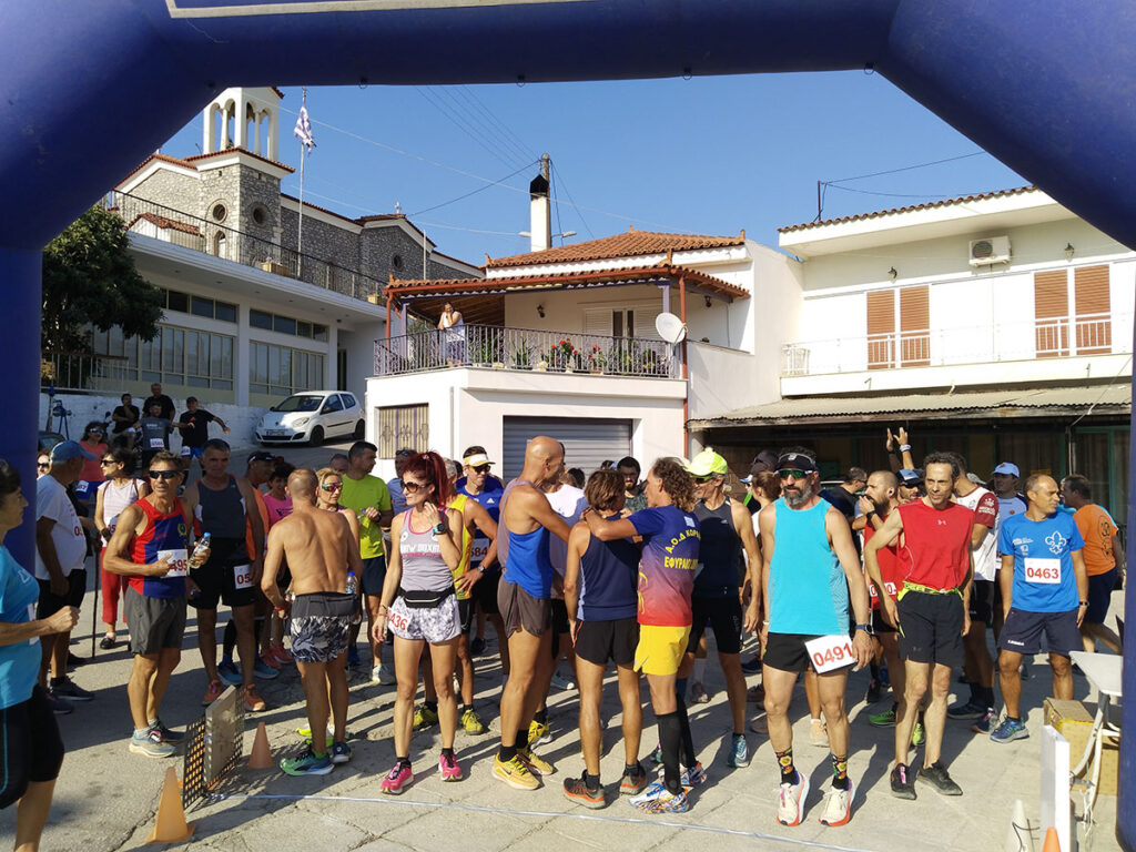 Οι δρομείς έκαναν ένα πέρασμα μέσα από τους αμπελώνες δημιουργώντας μία κυκλική διαδρομή στο χωριό.