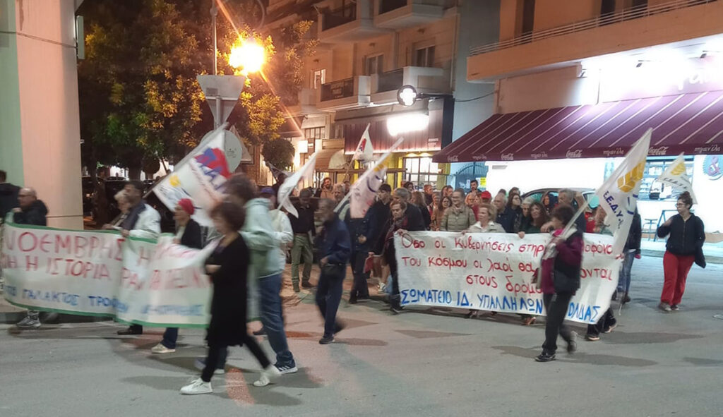 Πορεία και συγκέντρωση για την 50η επέτειο από την εξέγερση του Πολυτεχνείου πραγματοποιήθηκε τις βραδινές ώρες της Παρασκευής στην πλατεία Τριών Ναυάρχων, στο Ναύπλιο.