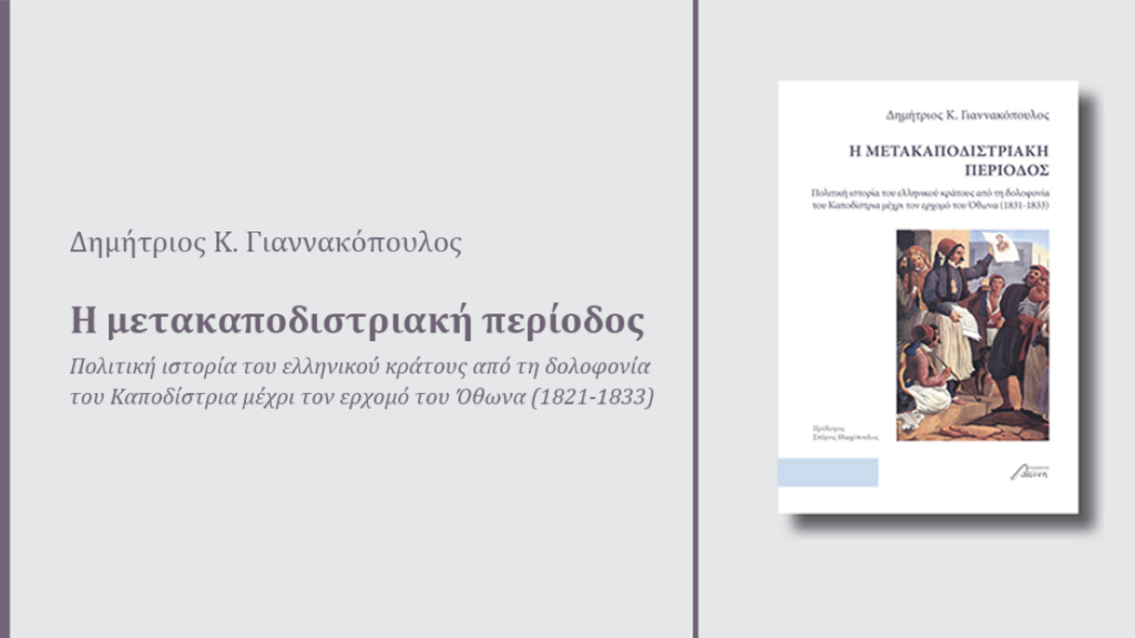 Η Δημόσια Κεντρική Βιβλιοθήκη Ναυπλίου Ο ΠΑΛΑΜΗΔΗΣ, οι Εκδόσεις ΑΣΙΝΗ και ο Σύνδεσμος Φιλολόγων Αργολίδας παρουσιάζουν το βιβλίο «Η Μετακαποδιστριακή περίοδος, Πολιτική Ιστορία του ελληνικού κράτους από τη δολοφονία του Καποδίστρια μέχρι τον ερχομό του Όθωνα (1831-1833)» του Ιστορικού και Δρ. Φιλοσοφίας του Εθνικού και Καποδιστριακού Πανεπιστημίου Αθηνών, πρώην Σχολικού Συμβούλου Φιλολόγων Ν. Αργολίδας, κ. Δημητρίου Κ. Γιαννακόπουλου.