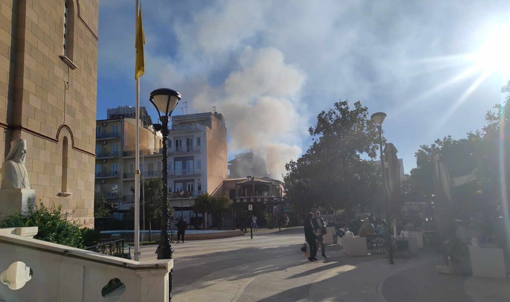Η πυροσβεστική πέρασε μέσα από την πλατεία για να φθάσει στο σημείο, ενώ στις προσπάθειες για την κατάσβεση έσπευσε ισχυρή δύναμη, λόγω και του κινδύνου επέκτασης της φωτιάς σε διπλανές κατοικίες ή επιχειρήσεις.