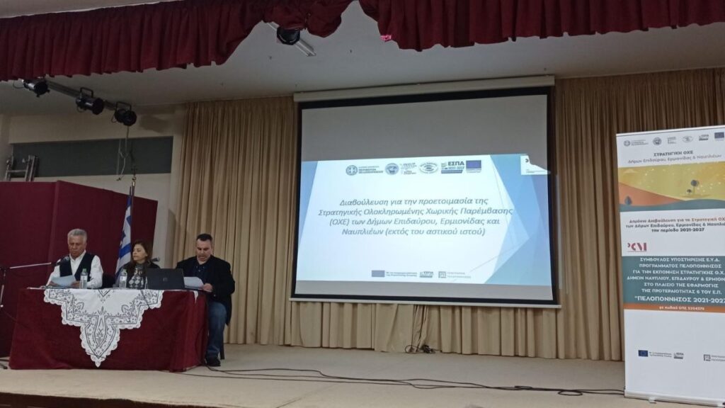 Με επιτυχία διεξήχθη χθες το απόγευμα, Κυριακή 11 Φεβρουαρίου 2024, στην αίθουσα εκδηλώσεων του ΓΕΛ Κρανιδίου, η πρώτη δημόσια Διαβούλευση για τη διαμόρφωση της Στρατηγικής της Ολοκληρωμένης Χωρικής Επέμβασης (ΟΧΕ) των Δήμων Επιδαύρου, Ερμιονίδας και Ναυπλιέων.