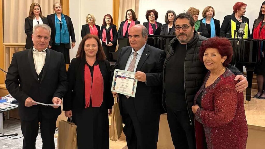 Την απονομή του αναμνηστικού επαίνου, έκανε ο Πρόεδρος του Ομίλου για την UNESCO Γιάννης Μαρωνίτης μαζί με την Διευθύντρια μουσικής για την UNESCO Πειραιώς και Νήσων Εύα Βασιλοπούλου.