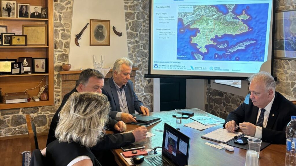 Στη Συνάντηση οι εκπρόσωποι της αναδόχου εταιρείας ανέλυσαν και παρουσίασαν λεπτομέρειες της εν λόγω Μελέτης που θα εκπονηθεί στον Δήμο Ερμιονίδας και Πόρου με την χρηματοδότηση του Ταμείου Ανάκαμψης και υπό την εποπτεία του Τεχνικού Επιμελητηρίου Ελλάδας.