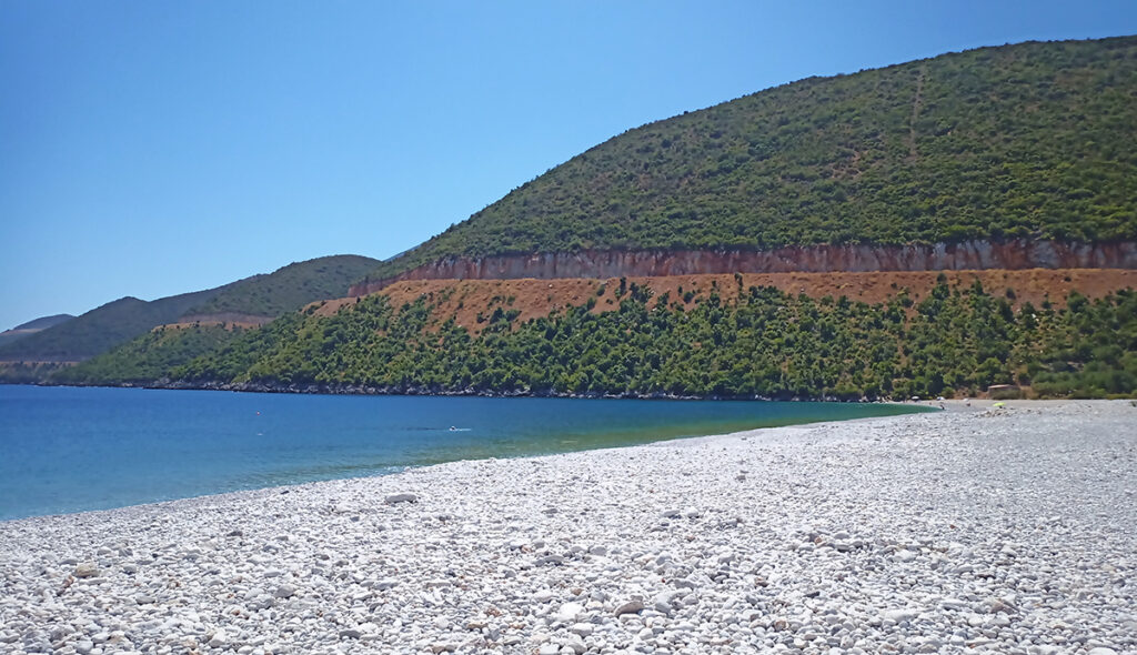 Πρόκειται για μία μεγάλη βοτσαλωτή παραλία, 20 χιλιόμετρα νοτιανατολικά από το Λεωνίδιο. Η απομακρυσμένη θέση της την καθιστά ιδανική για ήρεμες διακοπές και η τήρηση αποστάσεων είναι εύκολη. Υπάρχουν σημεία της που είναι οργανωμένα αλλά και χώρος χωρίς ομπρέλες και ξαπλώστρες.