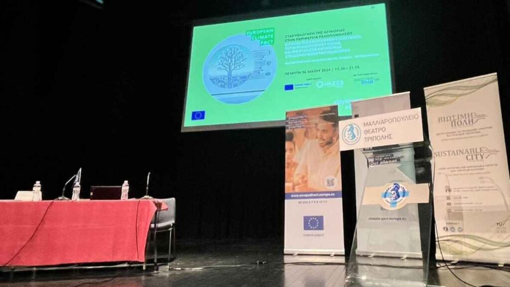 Ο ρόλος των ενεργειακών κοινοτήτων, του αγροδιατροφικού τομέα καθώς και της κυκλικής οικονομίας, ήταν το θέμα της ημερίδας που διοργανώθηκε από το Europe Direct, Εθνικό Συντονιστή για το Ευρωπαϊκό Σύμφωνο για το Κλίμα για την Ελλάδα – INZEB και το Δίκτυο Πόλεων «ΒΙΩΣΙΜΗ ΠΟΛΗ».