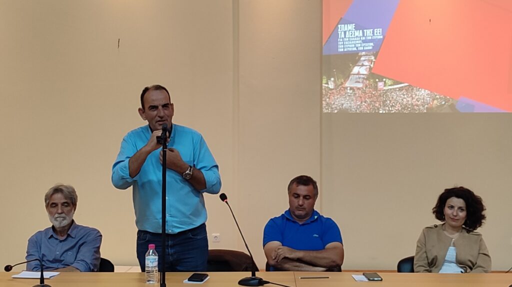 Κεντρικό ομιλητής ήταν ο Ρίζος Μαρούδας, υποψήφιος Ευρωβουλευτής και μέλος της ΚΕ του ΚΚΕ.