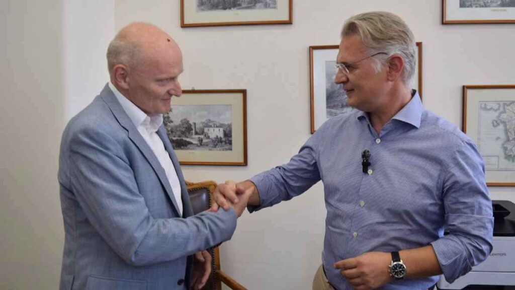 Η τουριστική προβολή, οι επενδυτικές ευκαιρίες στην Περιφέρεια Πελοποννήσου και οι εκθέσεις του εξωτερικού, ήταν οι τρεις άξονες της συζήτησης του Περιφερειάρχη Πελοποννήσου, Δημήτρη Πτωχού, με τον Γερμανό Πρέσβη, Αντρέας Κιντλ, στη συνάντηση που πραγματοποιήθηκε στα γραφεία της ΠΕ Μεσσηνίας, την Παρασκευή 12 Ιουλίου.