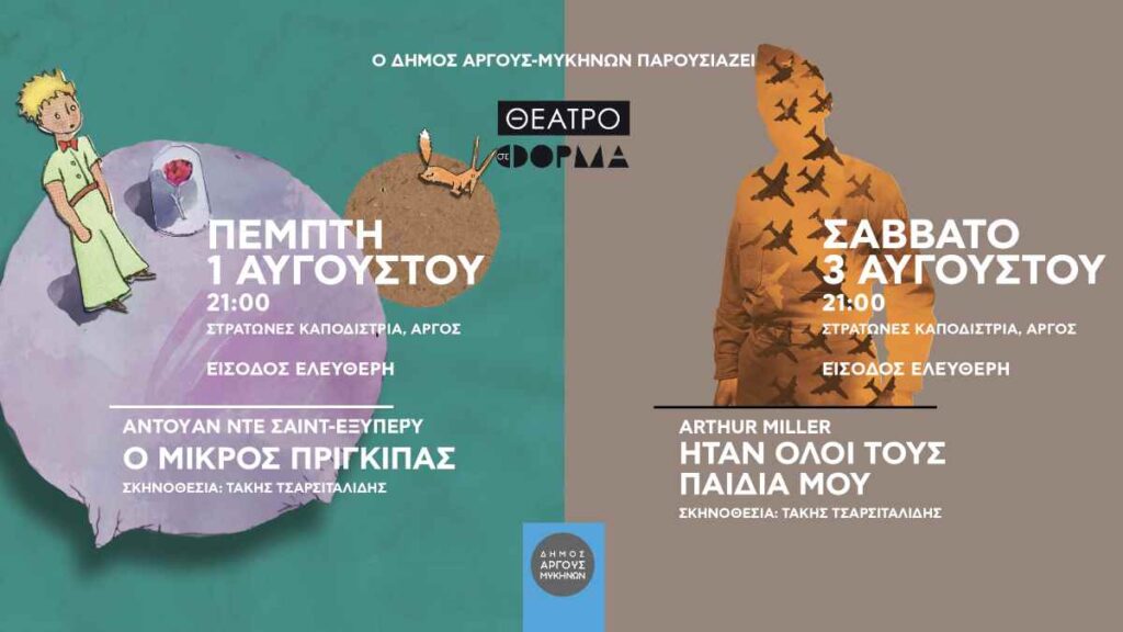 Το ΘΕΑΤΡΟσεΦΟΡΜΑ και ο Αργείος σκηνοθέτης Τάκης Τσαρσιταλίδης ξαναέρχονται στο Άργος και παρουσιάζουν στο πλαίσιο του «Πολιτιστικού Καλοκαιριού 2024», που διοργανώνει ο Δήμος Άργους-Μυκηνών, δυο κλασικά, έντονα συγκινητικά και διαχρονικά θεατρικά έργα.
