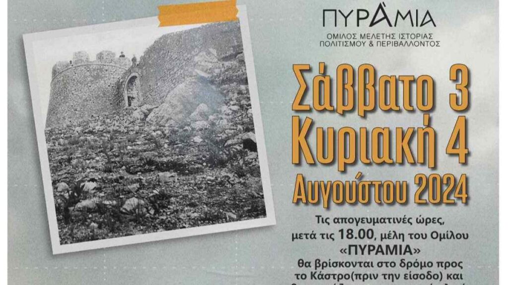 Θα ενημερώνει, διανέμοντας και σχετικό υλικό, τους επισκέπτες του Κάστρου για τη σημασία της Μάχης, το Σάββατο 3 και την Κυριακή 4 Αυγούστου, από τις 18.00 έως τις 20.30, στην είσοδο του Κάστρου.