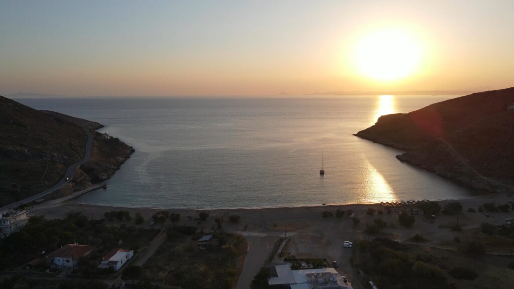 Λίγα μέτρα επίσης από την παραλία βρίσκεται και το μοναδικό κάμπινγκ του νησιού. Όσοι επιλέξετε να καθίσετε στην παραλία μέχρι αργά, θα απολαύσετε και το μοναδικό ηλιοβασίλεμα, απόρροια του δυτικού προσανατολισμού της παραλίας. Μια καλή ευκαιρία να επισκεφθείτε την περιοχή είναι στις 6 Αυγούστου, την ημέρα εορτασμού της Μεταμόρφωσης του Σωτήρος, καθώς στην παραλία διοργανώνεται παραδοσιακό πανηγύρι.