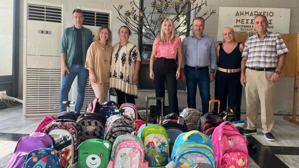 Στο πλαίσιο της κοινωνικής εθελοντικής δράσης «Τα σχολεία αρχίζουν και οι τσάντες γεμίζουν» παραδόθηκαν χθές στον Δήμο Μεσσήνης, 35 πλήρως εξοπλισμένες σχολικές τσάντες και άλλα σχολικά είδη.