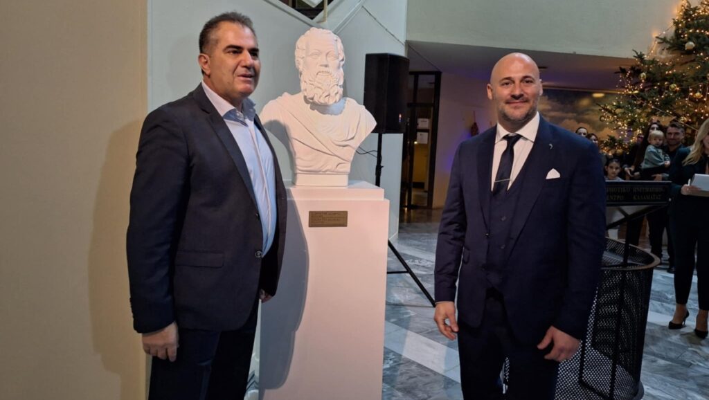 Tα αποκαλυπτήρια της προτομής του φιλοσόφου Σωκράτη πραγματοποιήθηκαν το Σάββατο 7 Δεκεμβρίου στο Δημοτικό Πνευματικό Κέντρο Καλαμάτας. Πρόκειται για έργο που φιλοτέχνησε ο καλαματιανός γλύπτης Ιωάννης Μπαλόπουλος, ο οποίος και δώρισε την προτομή στον Δήμο Καλαμάτας.
