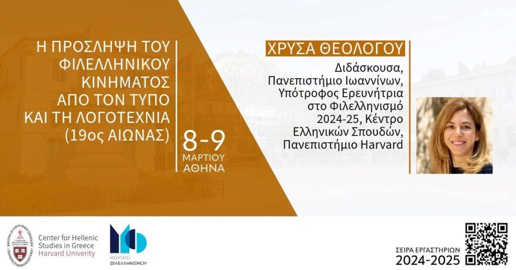 Το Κέντρο Ελληνικών Σπουδών του Χάρβαρντ στο Ναύπλιο, σε συνεργασία με το Μουσείο Φιλελληνισμού, διοργανώνει ένα σημαντικό εργαστήρι με τίτλο “Η προσληψη του φιλελληνικού κινήματος από τον Τύπο και τη Λογοτεχνία του 19ου αιώνα”.