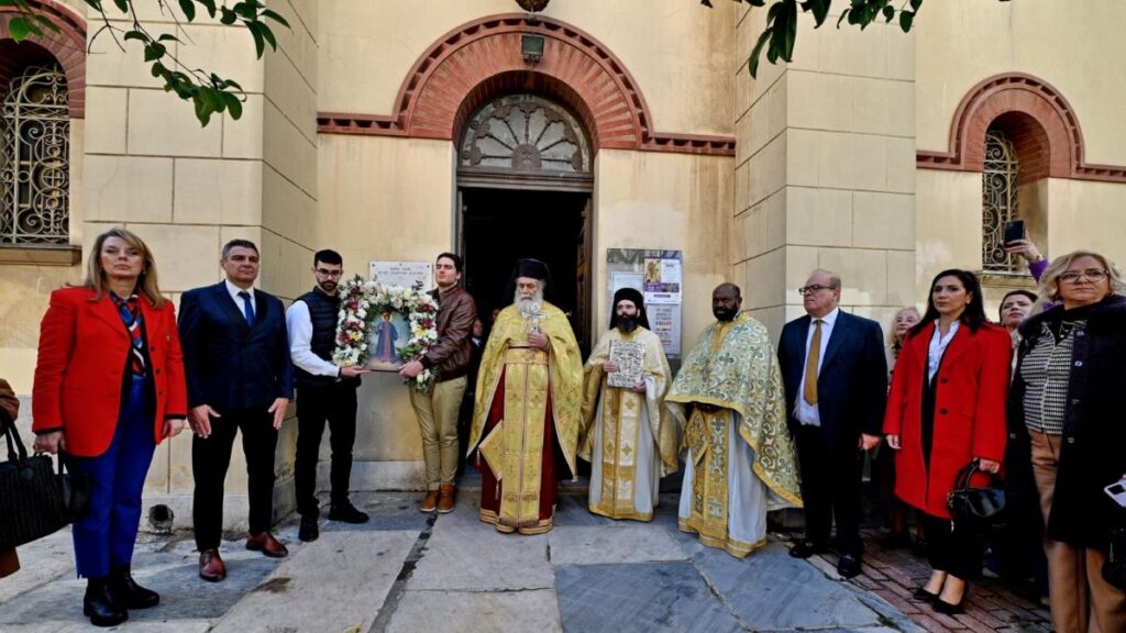 Πλήθος Κόσμου κατέκλυσε τον ιστορικό Ιερό Ναό του Αγίου Γεωργίου Καρύκη στο κέντρο της Αθήνας, όπου φυλάγεται η Αγία Του Εικόνα από το 1950.