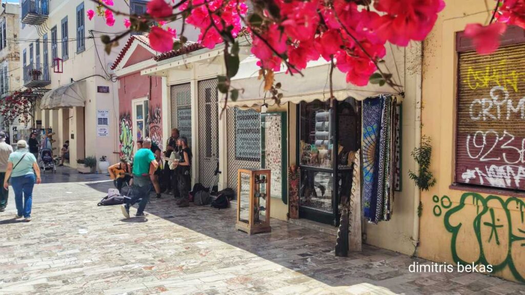 Αυτή η συνύπαρξη της τέχνης του δρόμου με την αισθητική της παλιάς πόλης δεν είναι απλώς τουριστικό ντεκόρ. Είναι πολιτιστική εμπειρία, έστω και στιγμιαία. Στους δρόμους όπου περπάτησαν φιλέλληνες και στρατηγοί, τώρα παίζει ένα μουσικό συγκρότημα. Και πάνω απ’ τα κεφάλια τους, οι κόκκινες βουκαμβίλιες φροντίζουν να θυμίζουν πως το Ναύπλιο είναι πρώτα πόλη της τέχνης και της ομορφιάς.