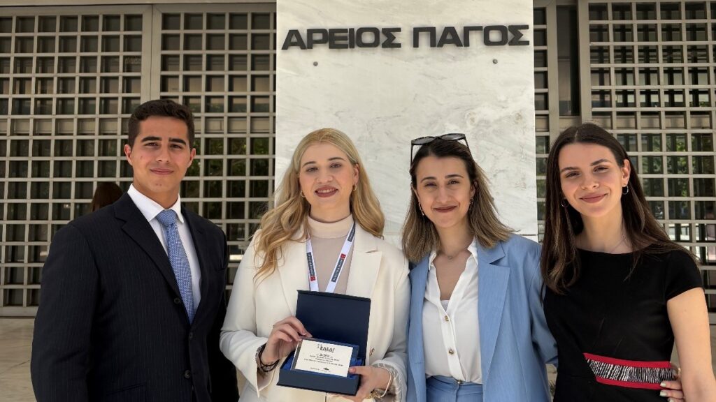 Η Ιωάννα, μαζί με τους συμφοιτητές της Αλέξάνδρα Ξαγοράρη και Φαίδωνα Βομβύλα, και με την επιστημονική καθοδήγηση της υποψήφιας διδάκτορος του ΕΚΠΑ Παναγιώτας Μητράκου, κατέλαβε τη δεύτερη θέση στον διαγωνισμό, που φέτος εστίασε σε ζητήματα πολιτικής δικαιοδοσίας και εμπορικού δικαίου.