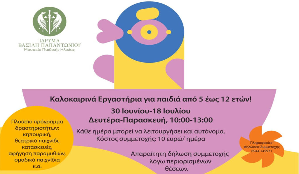 Καλοκαιρινά Εργαστήρια στο Μουσείο Παιδικής Ηλικίας του Ιδρύματος Βασίλη Παπαντωνίου