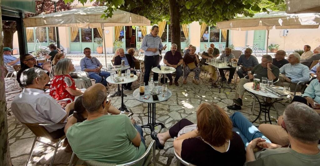 Στο ιστορικό «Μεγάλο Καφενείο», ο Σωκράτης Φάμελλος συζήτησε με μέλη και φίλους του κόμματος για όλα τα θέματα της επικαιρότητας.
