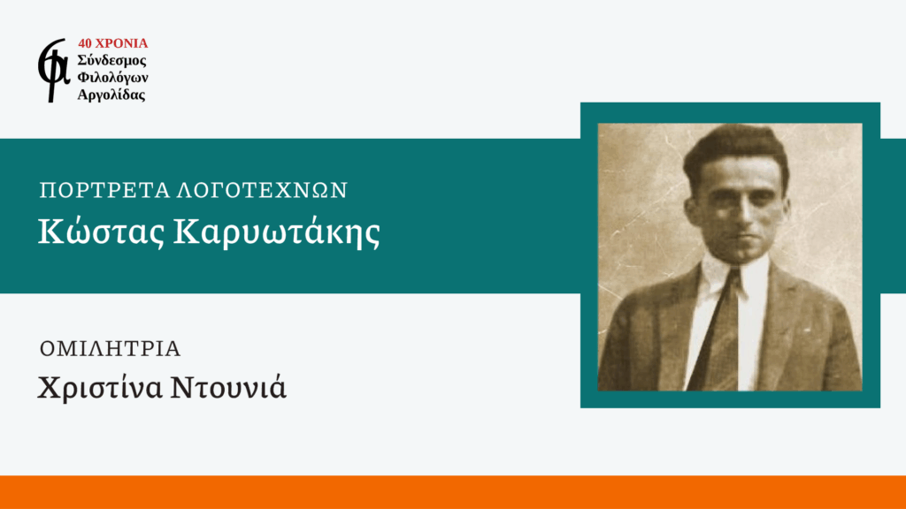 Ο Σύνδεσμος Φιλολόγων Αργολίδας συνεχίζει τη σειρά διαδικτυακών εκδηλώσεων «Πορτρέτα Λογοτεχνών», με μια διάλεξη αφιερωμένη στον Κώστα Καρυωτάκη, έναν από τους πιο εμβληματικούς ποιητές της νεοελληνικής λογοτεχνίας.
