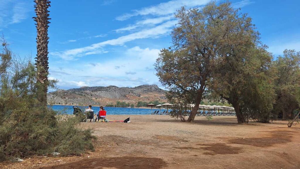 Από νωρίς το πρωί του Σαββάτου, η παραλία της Καραθώνας, στο Ναύπλιο, παρουσιάζει μια εικόνα διαφορετική από την καλοκαιρινή της ζωντάνια. Οι σειρές από ξαπλώστρες και ομπρέλες παραμένουν άδειες, με μερικές διπλωμένες και έτοιμες για αποθήκευση. Η αίσθηση που κυριαρχεί είναι ηρεμία, σχεδόν σιωπή, με μόνο λίγους επισκέπτες να απολαμβάνουν τη θάλασσα και τη θέα προς τον ανοιχτό κόλπο και τα βουνά στο βάθος.