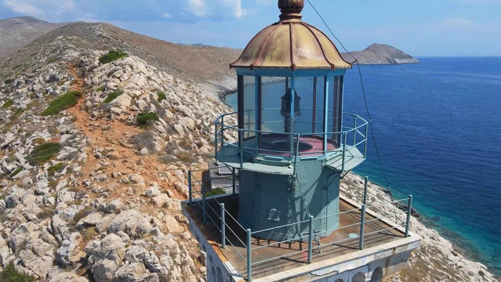 Στους φυσικούς βράχους του ακρωτηρίου εδράζεται, πάνω σε πλάτωμα, ορθογώνιο λιθόκτιστο κτήριο όπου και φέρεται ο ομώνυμος φάρος πελαγοδρομίας. Κατασκευάστηκε το 1882 και ξεκίνησε τη λειτουργία του το 1887. Ο φάρος έχει ύψος 16 μέτρα. Υπέστη καταστροφές κατά τη διάρκεια του Β΄ Παγκοσμίου Πολέμου, ωστόσο επαναλειτούργησε μεταπολεμικά. Το 2008 ανακαινίστηκε πλήρως με ενέργειες του Ιδρύματος Αικατερίνης Λασκαρίδη.