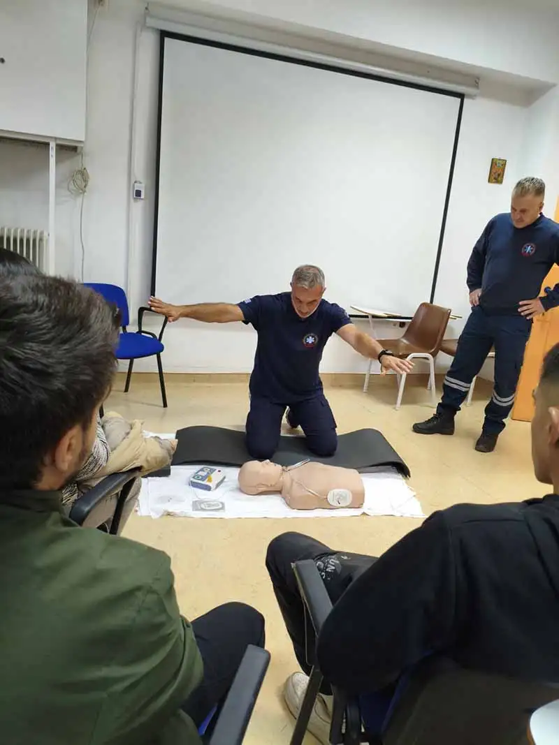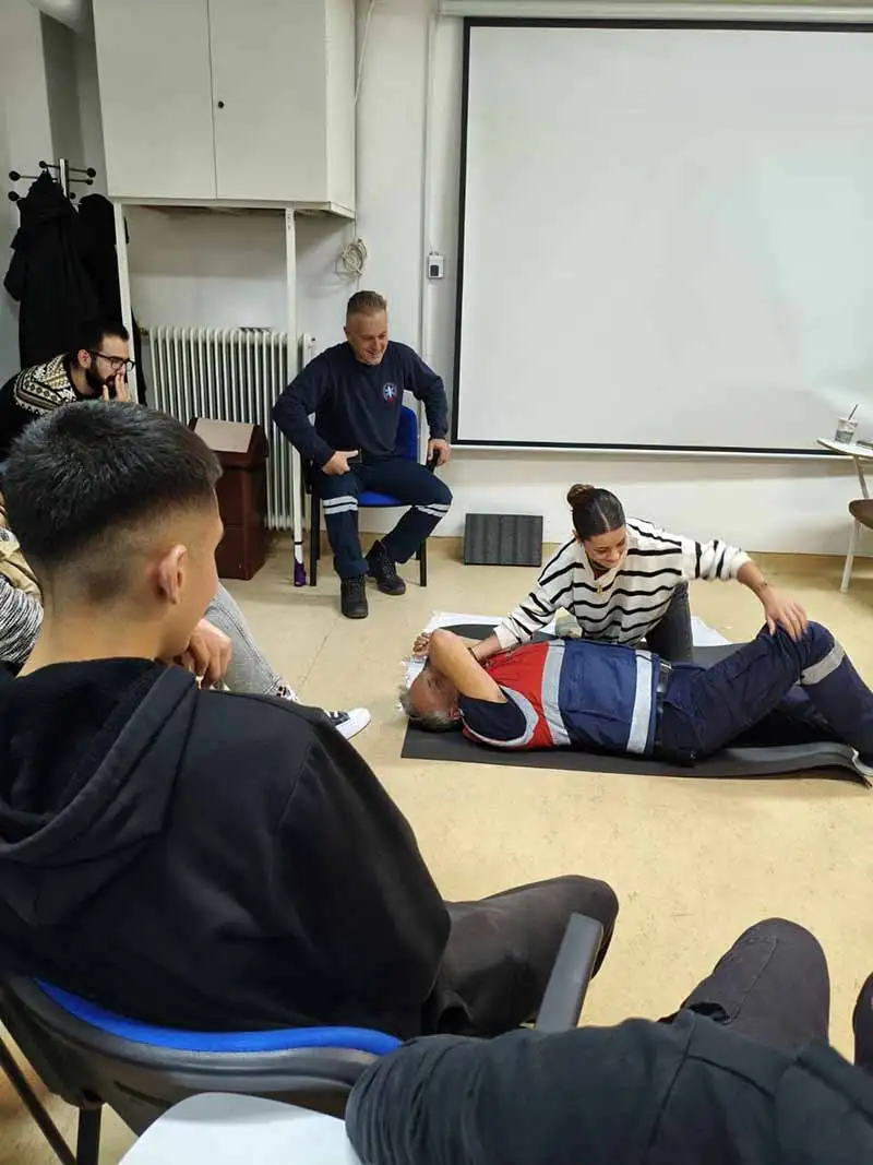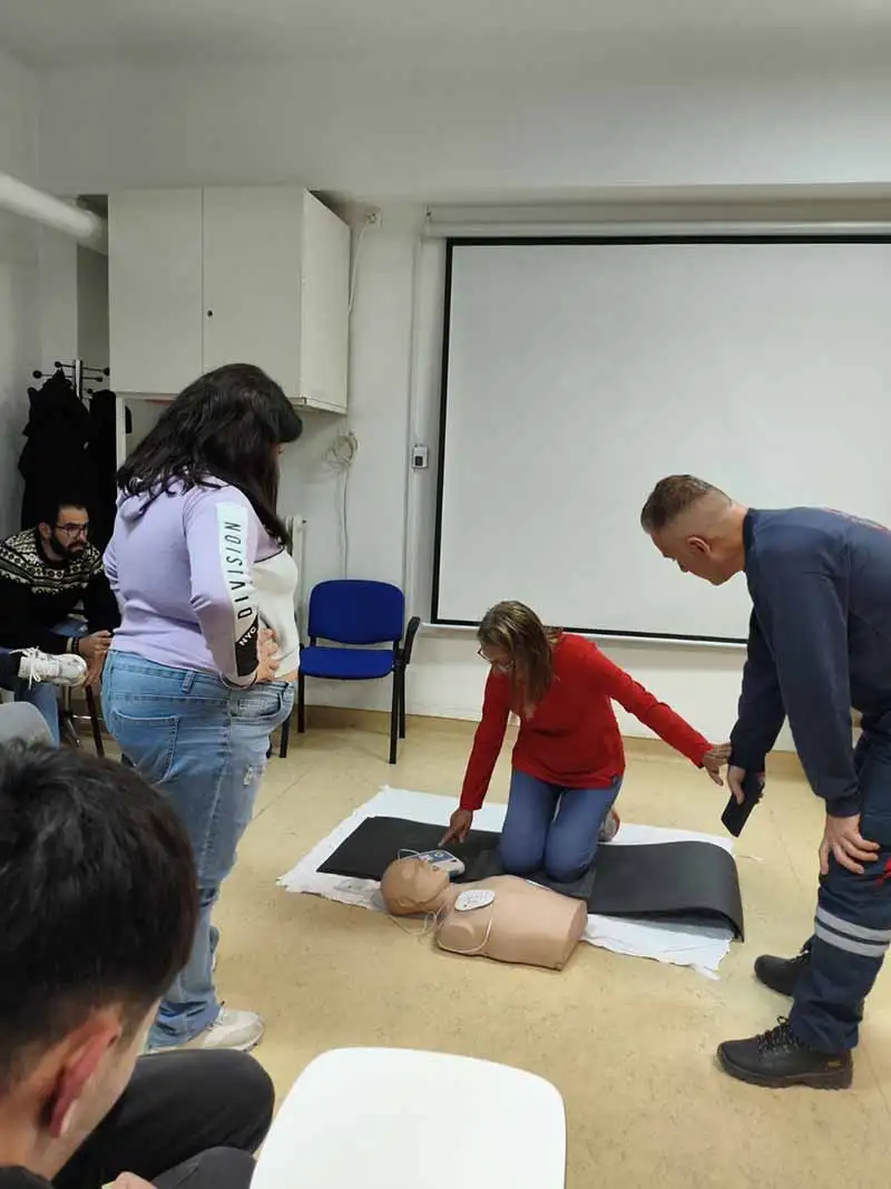 Οι σπουδαστές είχαν την ευκαιρία να εξασκηθούν πρακτικά στις τεχνικές ΚΑΡΠΑ, να μάθουν πώς να χρησιμοποιούν με ασφάλεια τον απινιδωτή και να αντιδρούν άμεσα και αποτελεσματικά σε περιστατικά καρδιακής ανακοπής.