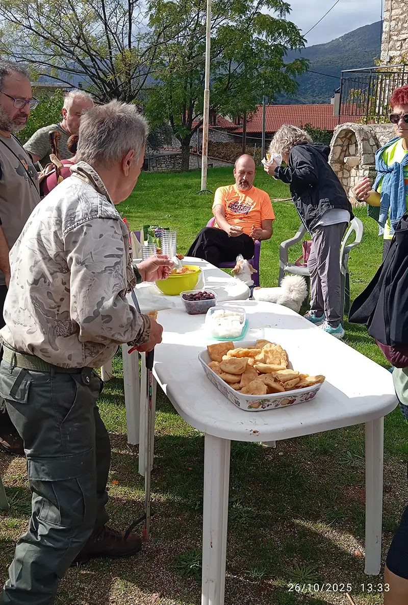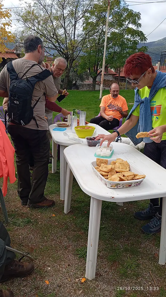 Η διαδρομή ολοκληρώθηκε στο Δημοτικό Σχολείο του χωριού, όπου οι γυναίκες της Πλατανοβρύσης πρόσφεραν με αγάπη παραδοσιακά εδέσματα και κεράσματα, δημιουργώντας μια ζεστή, συλλογική στιγμή που θύμιζε τις παλιές γιορτές της υπαίθρου.