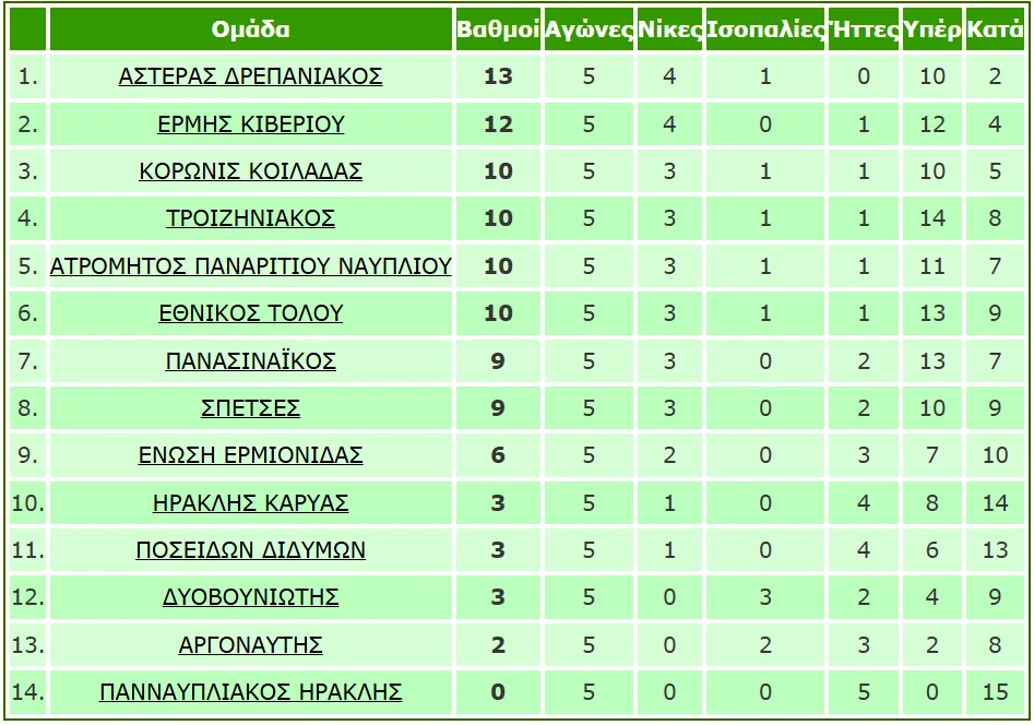 Μόνη ομάδα χωρίς ήττα παραμένει ο Αστέρας Δρεπανιακός που σε αυτή την αγωνιστική είχε την πρώτη απώλεια βαθμών, καθώς ήρθε ισόπαλος με τον Αργοναύτη στη Νέα Κίο.